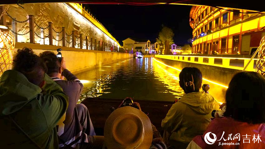 華燈初上,琿春渤海古鎮流光溢彩。走進古鎮,青磚黛瓦的建筑錯落分布,飛檐斗拱的設計精巧靈動,仿佛將人帶回盛唐時期。沉浸式的旅游體驗,從唐詩石刻到泛舟觀景,每一處都吸引了不少游客,他們身著傳統漢服拍照打卡,在唐風古韻中定格美好瞬間。