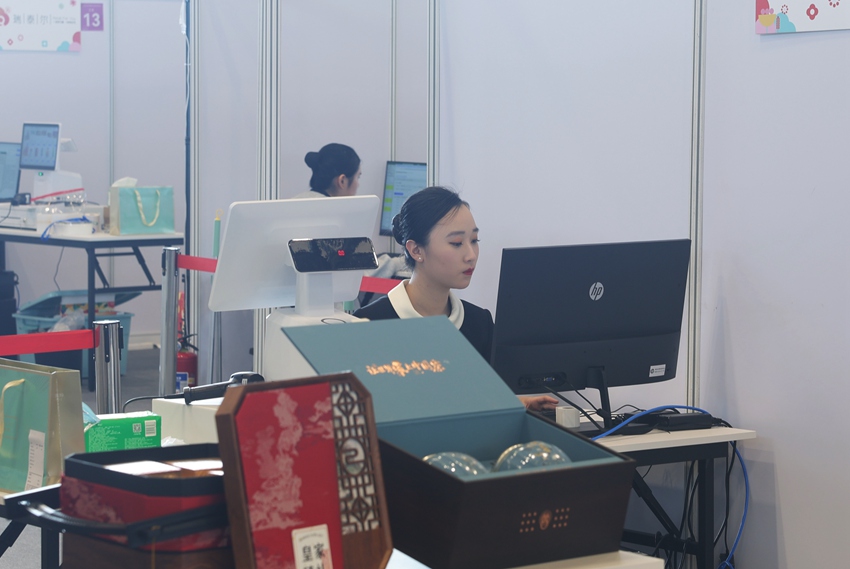 人民網鄭州9月22日電 (記者王海躍)第三屆全國技能大賽正如火如荼進行。在零售項目比賽現場,來自長春科技學院英語專業的陳儷夫已完成貨物陳列比賽內容,正運用數字化工具進行下一步操作。