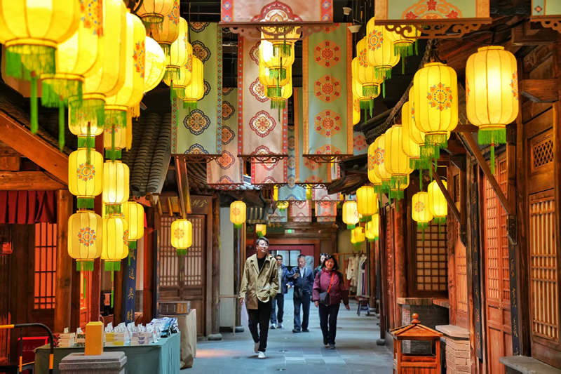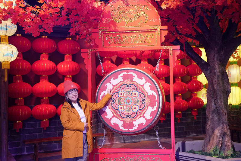 走進演藝街區,木質樓閣重施新彩,朱紅與橙黃交融映照,呈現出一幅鮮活而富有古韻的街景圖卷。街區創新采用“文化+科技+演藝”的融合模式,復原了金代市井生活場景,琳瑯滿目的商品、此起彼伏的叫賣聲,構建起虛實交織的時空場景。