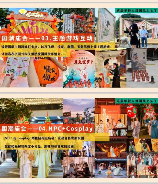 NPC與Cosplay團隊邀你合影發圈領小禮;漢服戲曲高蹺巡演、“醒獅點睛”“采青吐?!北硌莩蟹諊?,更有畫展、酒吧樂隊演出添活力。