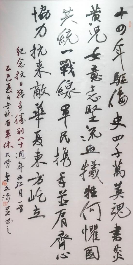 “文以載道,以文化人”。為通過藝術形式展示抗戰老兵風采,中共吉林省委宣傳部、吉林省退役軍人事務廳、吉林省軍區政治工作局、吉林省文學藝術界聯合會共同開展吉林省“紀念中國人民抗日戰爭暨世界反法西斯戰爭勝利80周年 兵心永向黨”退役軍人主題文藝作品創作征集和展評活動。來自長春師范大學、吉林藝術學院、白城師范學院等高校師生和各級文聯的文藝工作者、退役軍人文藝愛好者以藝術之名回望烽火歲月,以丹青之筆禮贊民族脊梁,積極參與文藝作品創作。各類藝術作品表達了社會各界對抗戰老兵的尊崇,成為文藝工作者為時代畫像、為時代立傳、為時代明德新窗口。