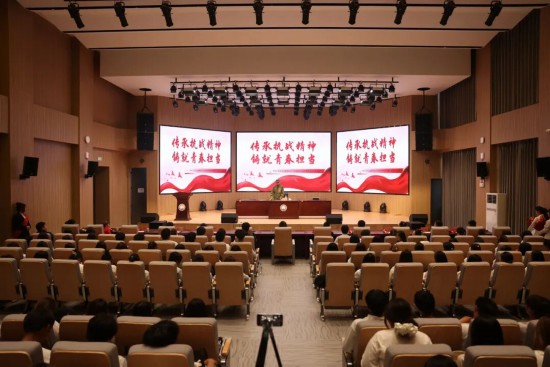 報告廳內座無虛席,肅穆與崇敬的氣息像暖潮般包裹著每一寸空間。大屏幕上,“傳承抗戰精神 鑄就青春擔當” 十二個鮮紅大字熠熠生輝,宛如一盞明燈,時刻提醒著在場師生:歷史從不是書本上冰冷的文字,而是由無數熱血生命書寫的滾燙篇章?;顒娱_始前半小時,報告廳的入口便排起了長隊。學生們或手捧筆記本,專注翻閱著抗戰史料,筆尖不時在關鍵處勾畫;或圍在一起輕聲交流,年輕的眼眸里滿是對老戰士的期待與對歷史的敬畏,那份純粹的向往,讓整個空間都變得格外莊重。