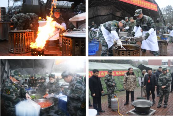 演練以部隊實戰化訓練保障為背景,某部前往凈月區玉潭鎮執行任務。當日氣溫驟降、天氣惡劣、雨雪交加,長春軍代室接到北部戰區軍事運輸投送中心通知,要求長春市軍供站做好1100份保障餐,并送達指定地點??紤]時間緊、任務重,長春市軍供站啟動中部軍供保障區域協作保障機制,聯合吉林市、四平市軍供站完成保障任務。