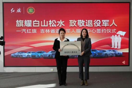 現場,吉林省退役軍人服務中心主任趙春雨與一汽紅旗汽車銷售有限公司東北區事業部總監王震興代表合作雙方簽署戰略合作協議,省委退役軍人事務工作領導小組辦公室秘書處處長黃凱向一汽紅旗汽車銷售有限公司黨群人事部總監莫彬頒授《吉林省關心關愛退役軍人擁軍企業榮譽證書》,各市(州)退役軍人服務中心向當地紅旗品牌體驗中心頒授退役軍人服務站牌匾。